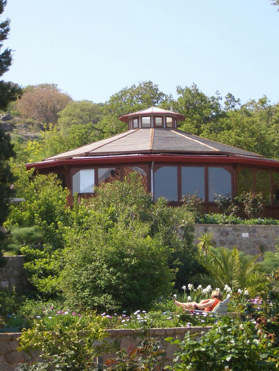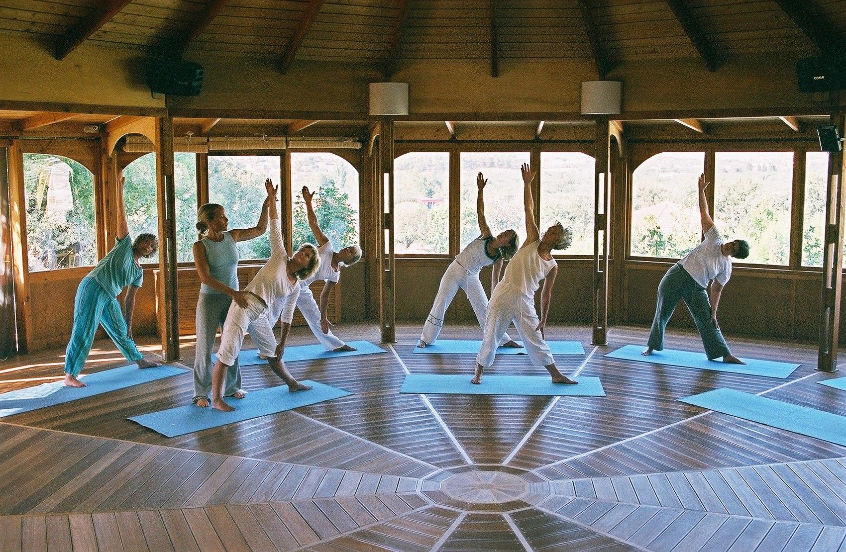 Yogasalen er en stor Mandala bygget i træ og med vinduer hele vejen rundt, så du kan nyde udsigten og mærke brisen fra havet på yogamåtten. Der er plads til ca. 26 yogamåtter i salen.