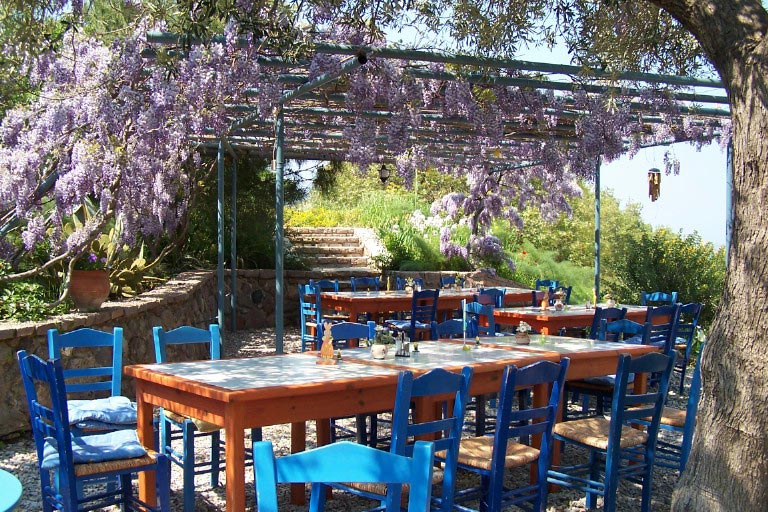 Maden er hjemmelavet, sund og græsk inspireret. Den tilberedes af vores værter og medhjælpere. De bruger råvarer fra stedets køkkenhave og lokale producenter i området.