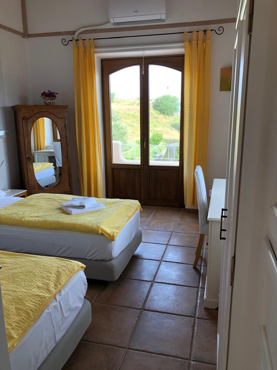 Disse værelser er udstyret med to adskilte senge, aircondition, lille køleskab, eget bad og toilet og udgang til haven. Der er adgang til at kunne lave kaffe og the i et lille fællesområde tæt på værelserne i samme bygning.